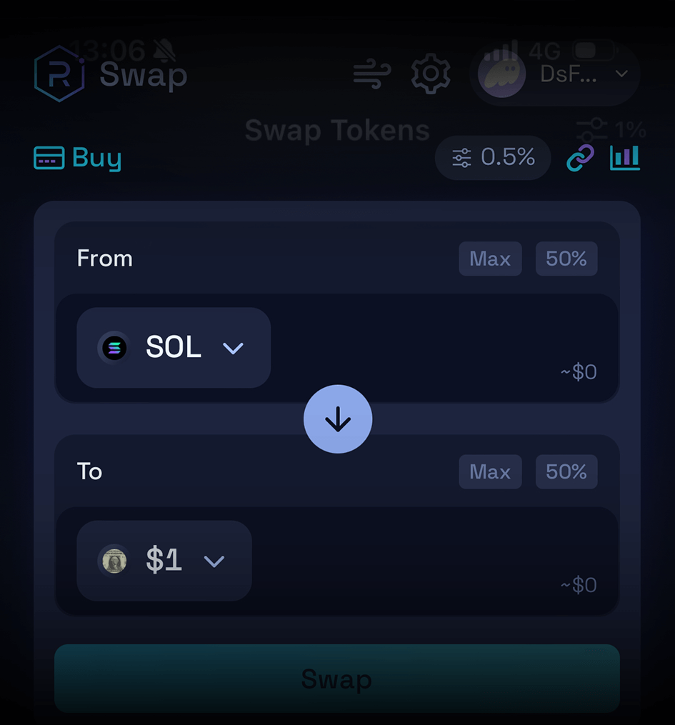 Connect your wallet and swap digital assets to $1 on decentralized exchange Raydium.io. Always use our coin address, you can select & copy it on top of this page.